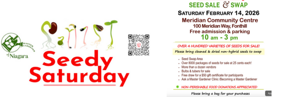 Come join us Saturday, February 14, 2026 at the Meridian Centre in Fonthill from 10AM to 3PM for our next Seedy Saturday event!